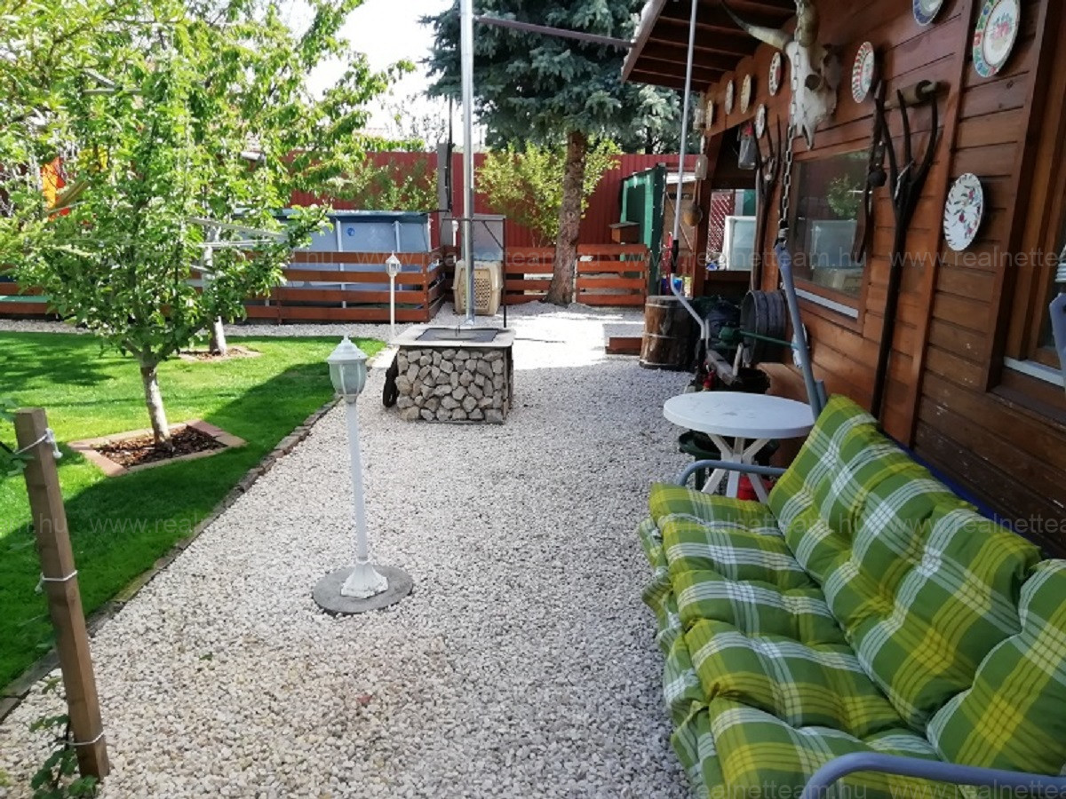 Itt található még egy 28 nm-es udvari tároló, több funkciós kerti grillező, 20 nm-es medence, /fűtő kollektor/ mely a nyári melegben kellemes hűsölést biztosít.