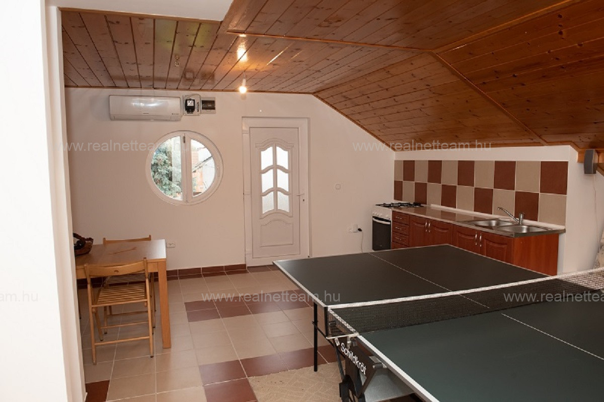 Elrendezése: amerikai konyhás nappali, WC, hidromasszázs zuhanyzó, illetve teljes légelszívással, kandallóval és klímával rendelkező helyiségekből áll.