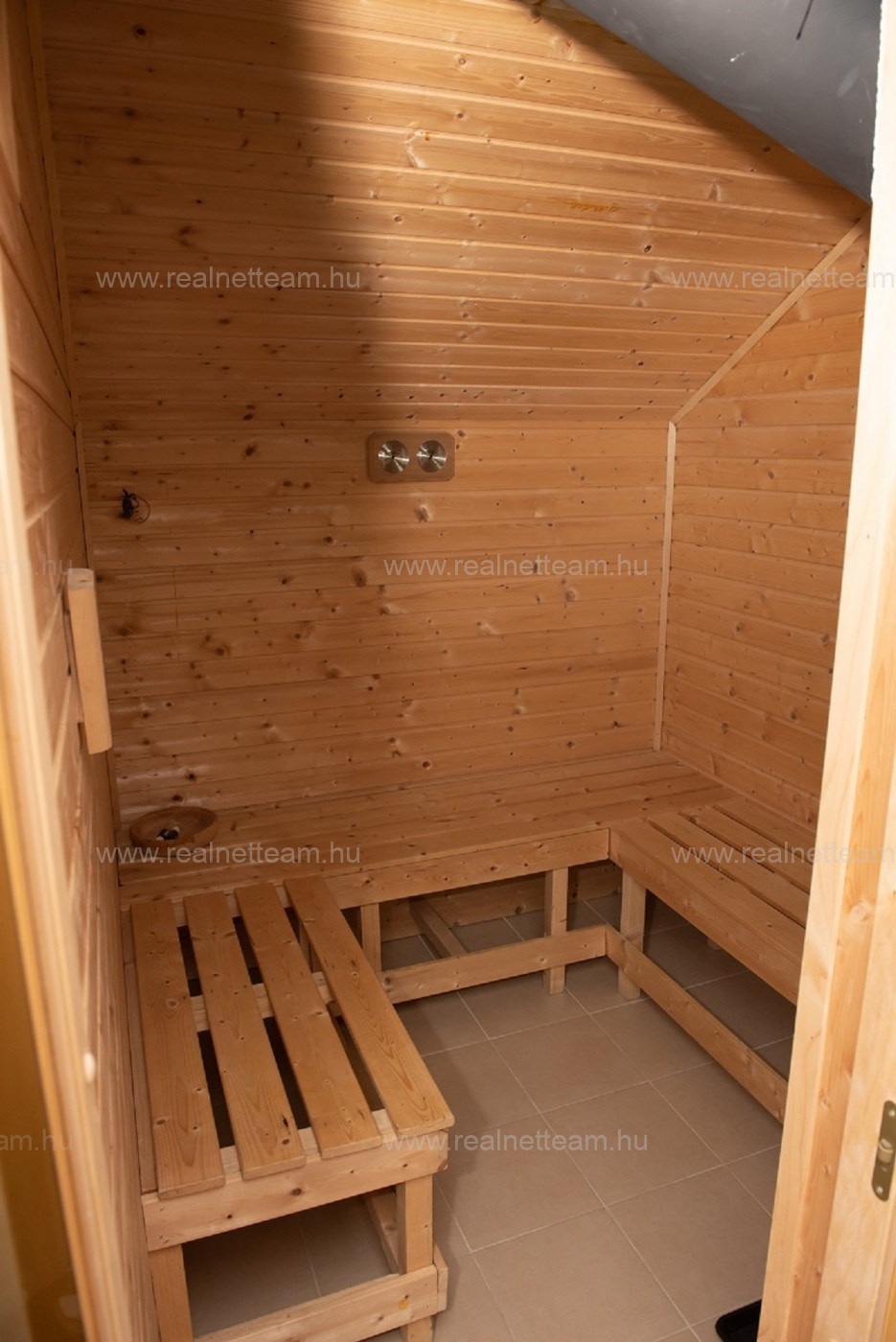 Itt található egy kényelmes amerikai konyhás nappali + étkező, egy egész szoba, egy kisszoba, gardrób, fürdőszoba és kamra. Szauna biztosítja az esti ellazulást. A tetőtér szakszerű szigetelése gondoskodik a nyári melegben és a téli hidegben a kellemes klímáról.