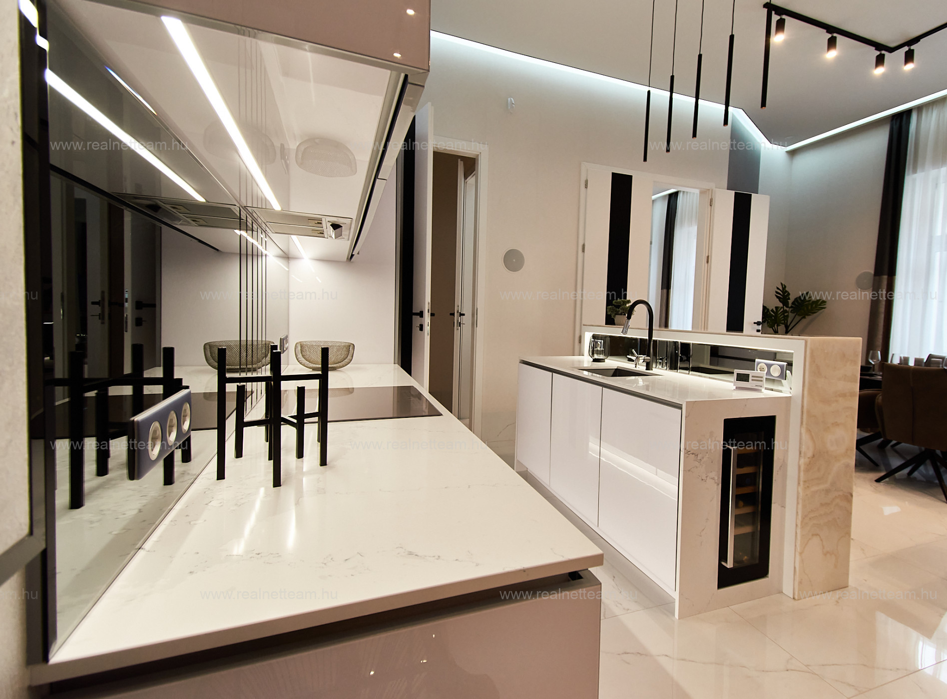Exkluzív felszereltség: padló- és falfűtés, klíma minden szobában, gépesített konyha, 5.1 házimozi rendszer, HD projektor, masszázskád, széf, riasztó stb.
