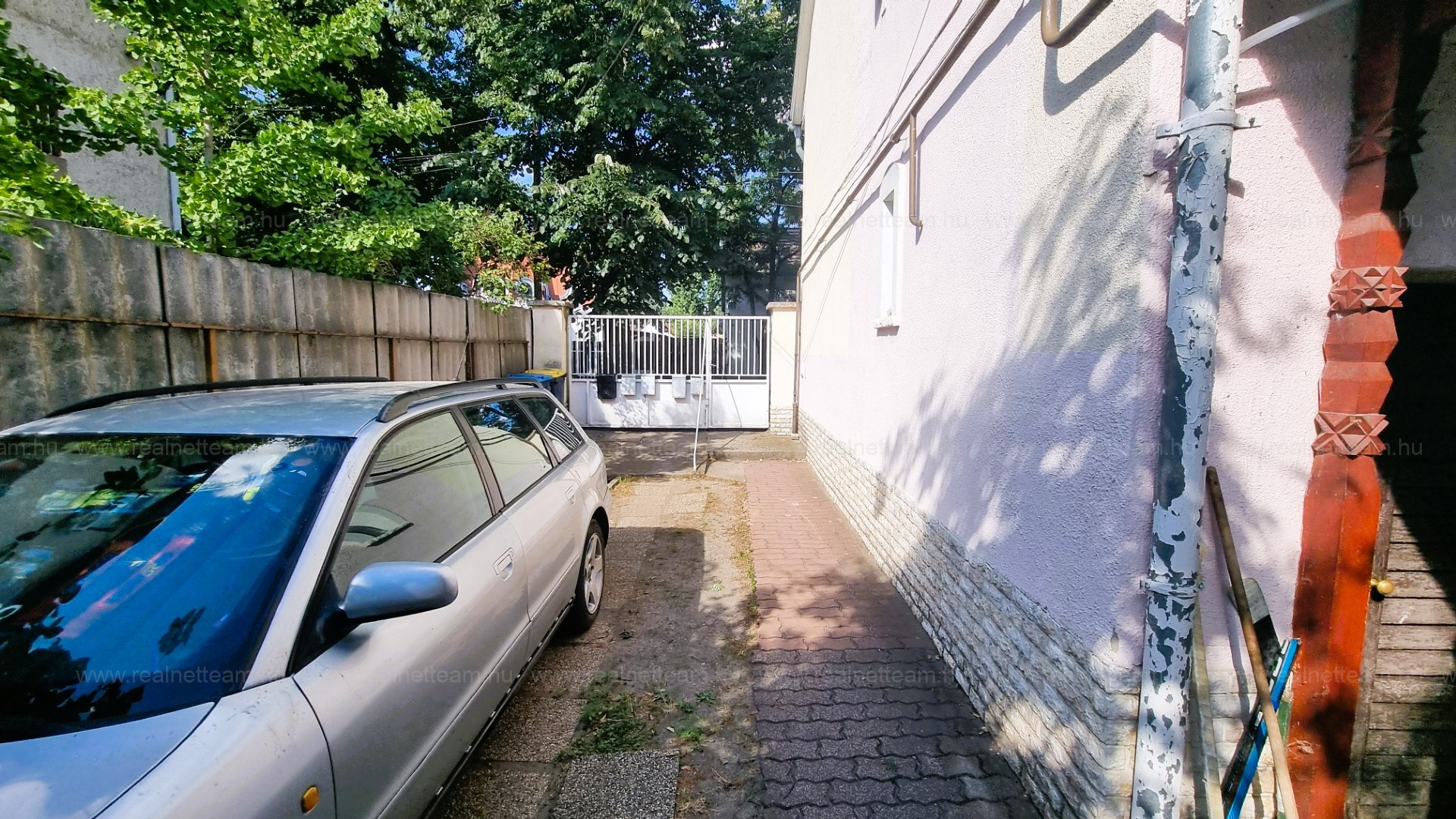 Az ingatlanhoz tartozik egy saját kertrész és egy gépkocsi beálló is.
