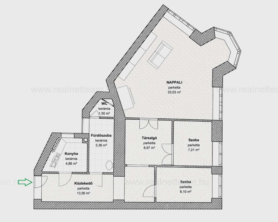 Laminált padló, a szobákban járólap a vizes  helyiségekben .