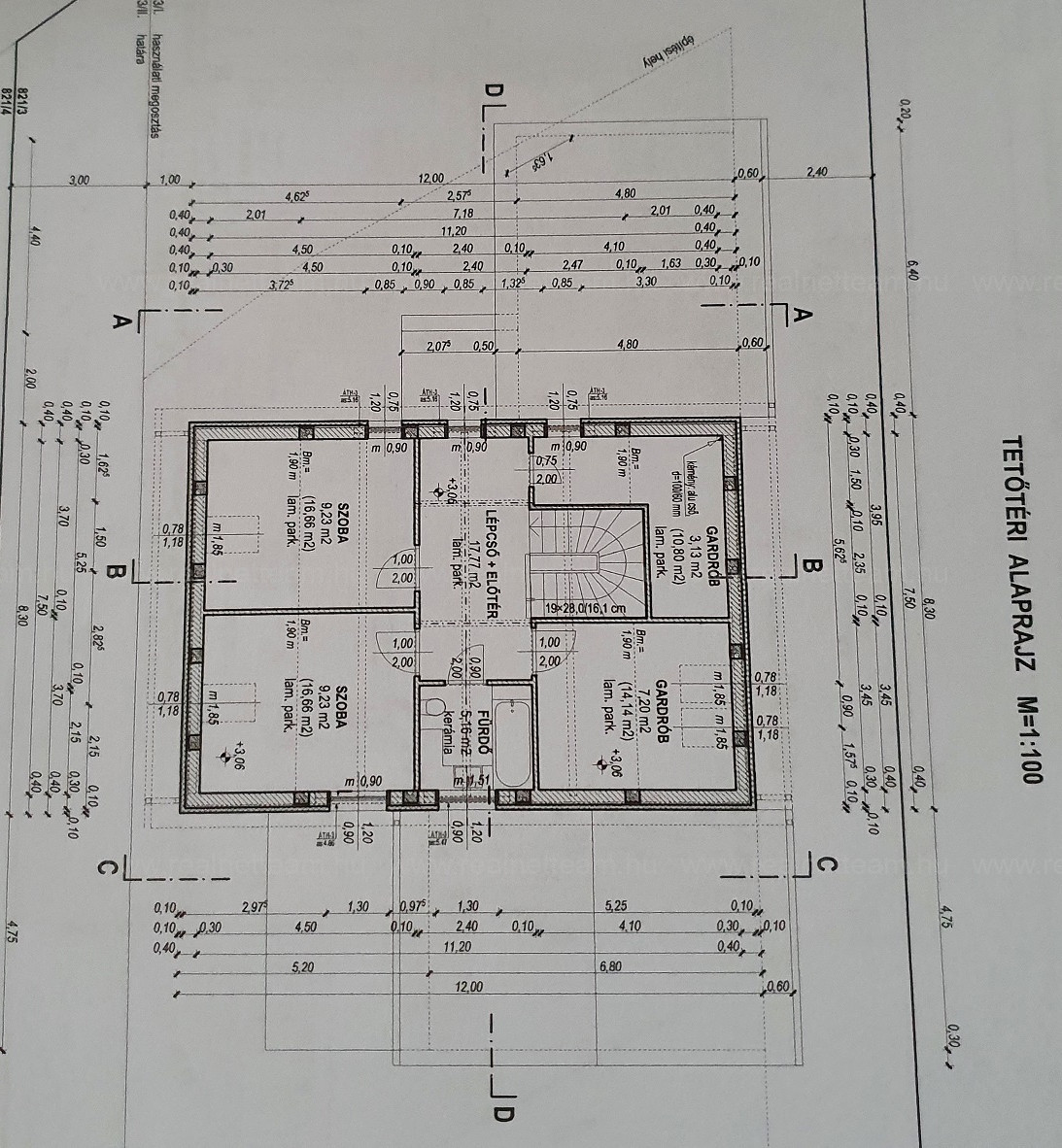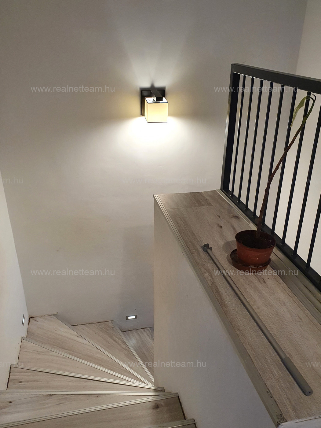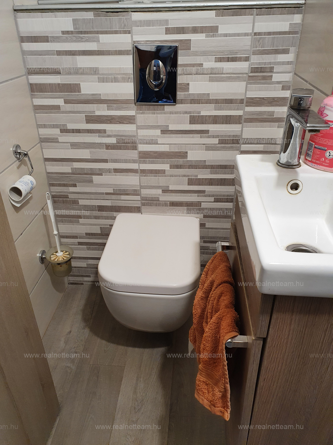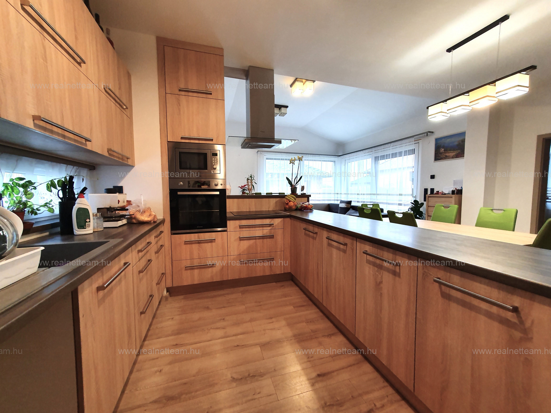 A tetőtérben 3 hálószoba, fürdőszoba WC-vel, és egy gardrób található. A burkolatok: laminált parketta és vízálló laminált parketta. A konyhabútor főzőlappal, sütővel, mikróval, a fürdőszobabútor és a lámpatestek, függönyök, karnisok a vételár részét képezik. A felső szinten hővédő rolók vannak.