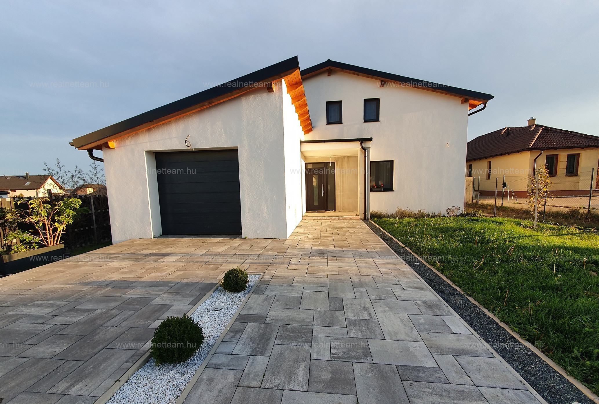A garázson kívül a ház előtti térkövezett udvarrészen is lehet parkolni.
