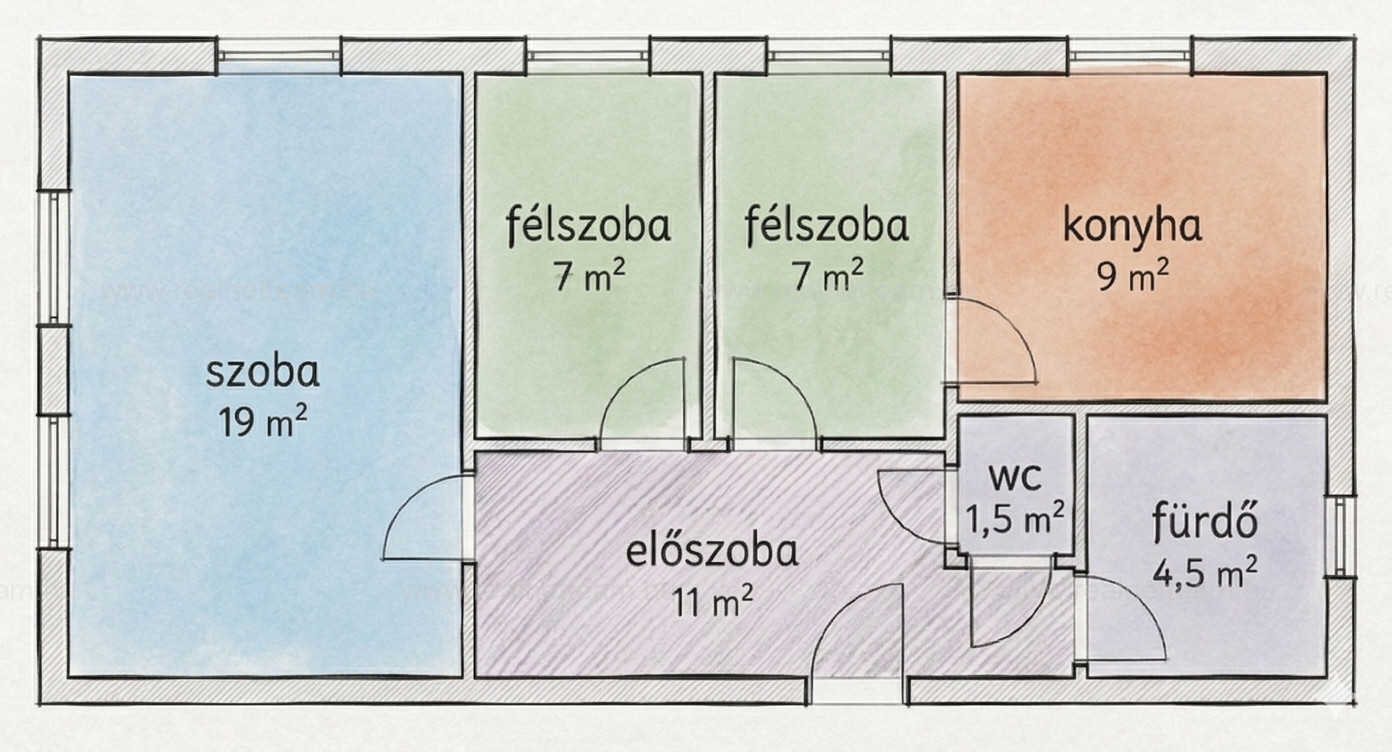 A fotók egy idealizáltabb állapotot mutatnak, ugyanakkor az ingatlan alap adottságai és valós karaktere ettől nem tér el.